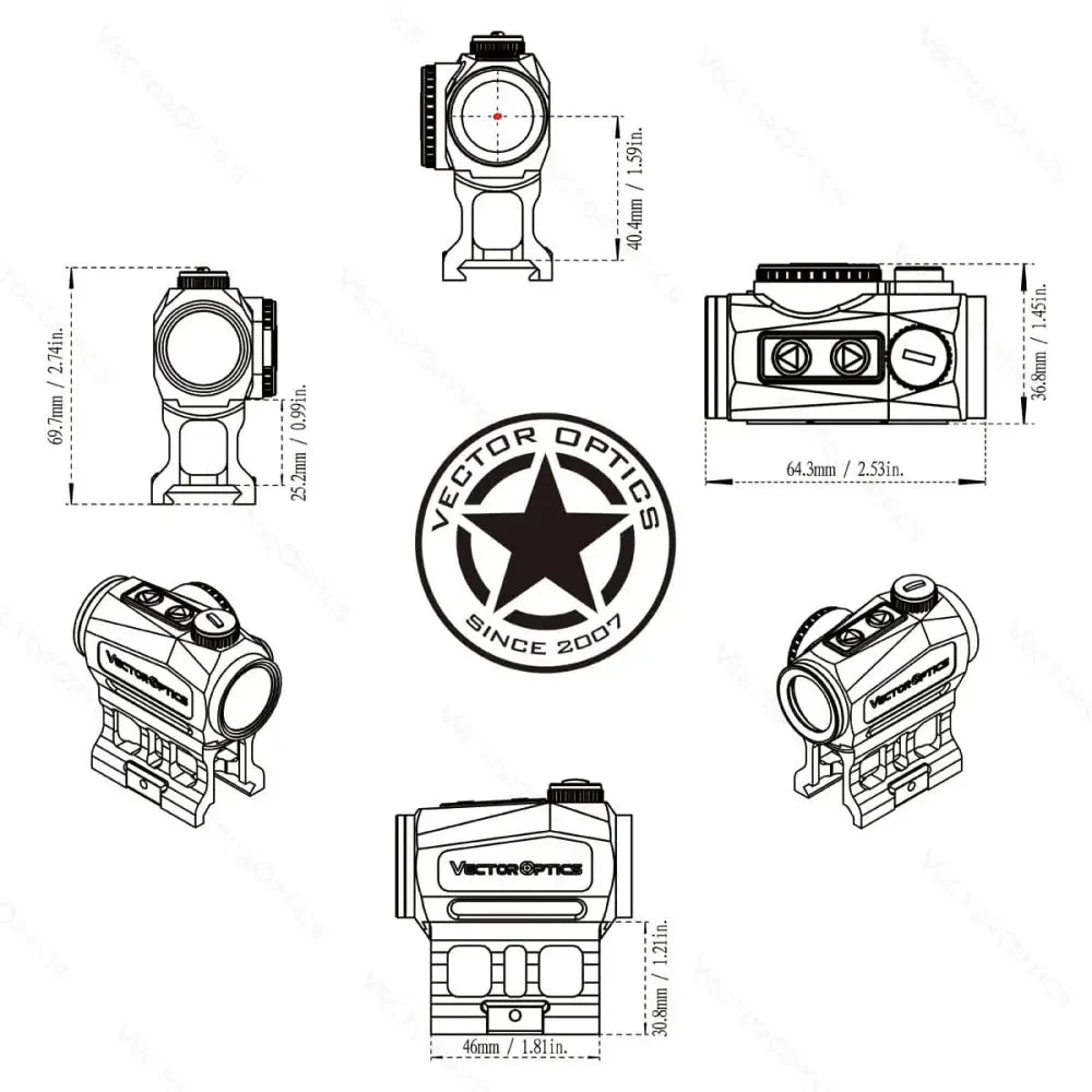 Директна лампа с размер на точката 2 MOA без трептене, 8 нива на интензивност на точката и 2 нива на интензивност на точката NV