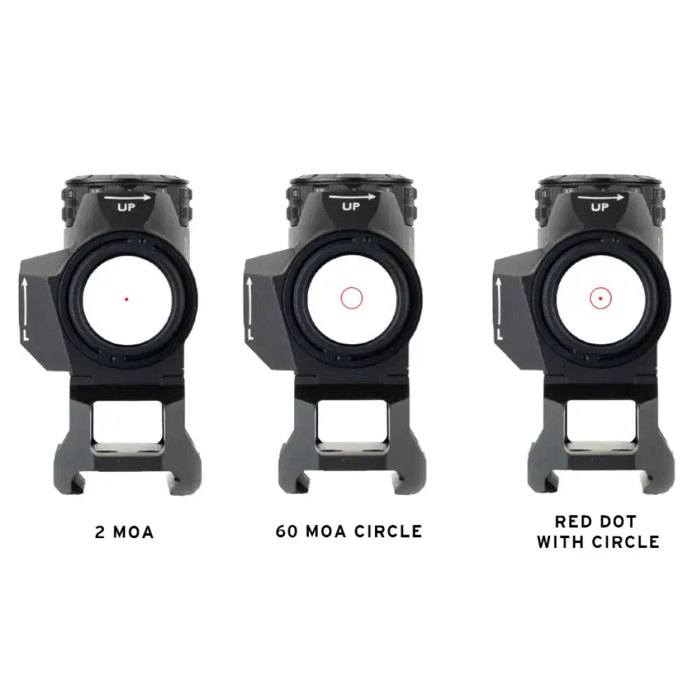 Мрежа: Точка (2 MOA), кръг (60 MOA), точка + кръг