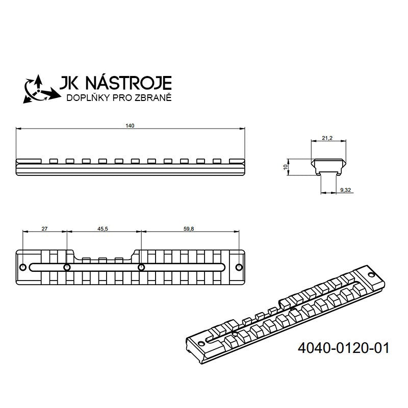 Шина Picatinny (основа за оптика) за монтиране на монтажни пръстени с Picatinny интерфейс.