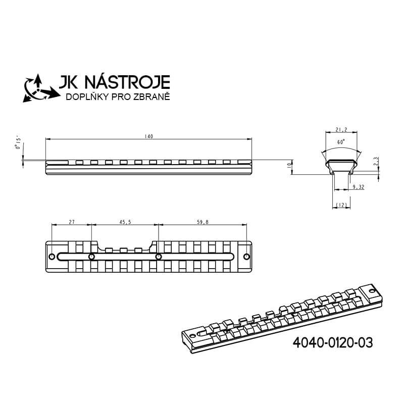 Шина Picatinny (основа за оптика) за монтиране на монтажни пръстени с Picatinny интерфейс.