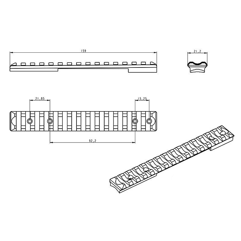 Шина Picatinny (основа за оптика) за монтиране на монтажни пръстени с Picatinny интерфейс.