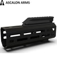 Цевна Накладка изработен от неръждаема стомана с няколко M-Lok слота и Шина Picatinny отгоре и отдолу.